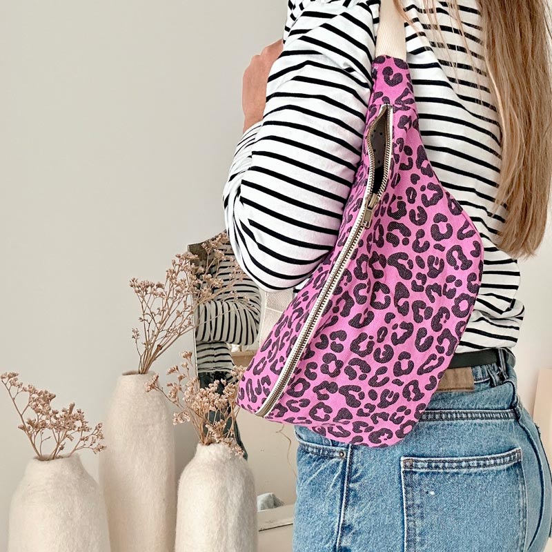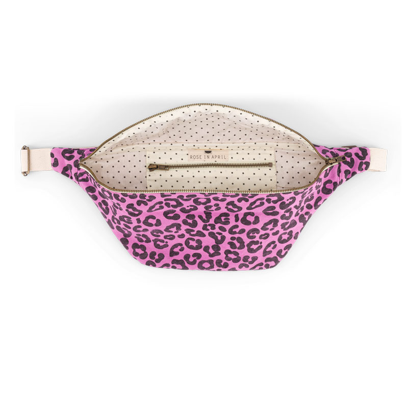 On craque tous pour cet accessoire à la fois super tendance, un brin rétro et vraiment pratique pour glisser toutes ses petites affaires (portefeuille, mouchoirs, clefs, smartphone…) sans s’encombrer les bras d’un sac à main: le sac banane. Ici, avec son imprimé «Graou», du léopard contrastant avec la couleur orchidée (rose-violet), ce grand sac banane ajoutera une touche sauvage, rock’n’roll et colorée à votre tenue. Un chouette cadeau d’anniversaire, de fête, de Noël… pour les passionnés de mode, que vous pourrez éventuellement compléter avec l’un des porte-monnaies ou foulards (langes) de la marque Rose In April, également disponibles à La…