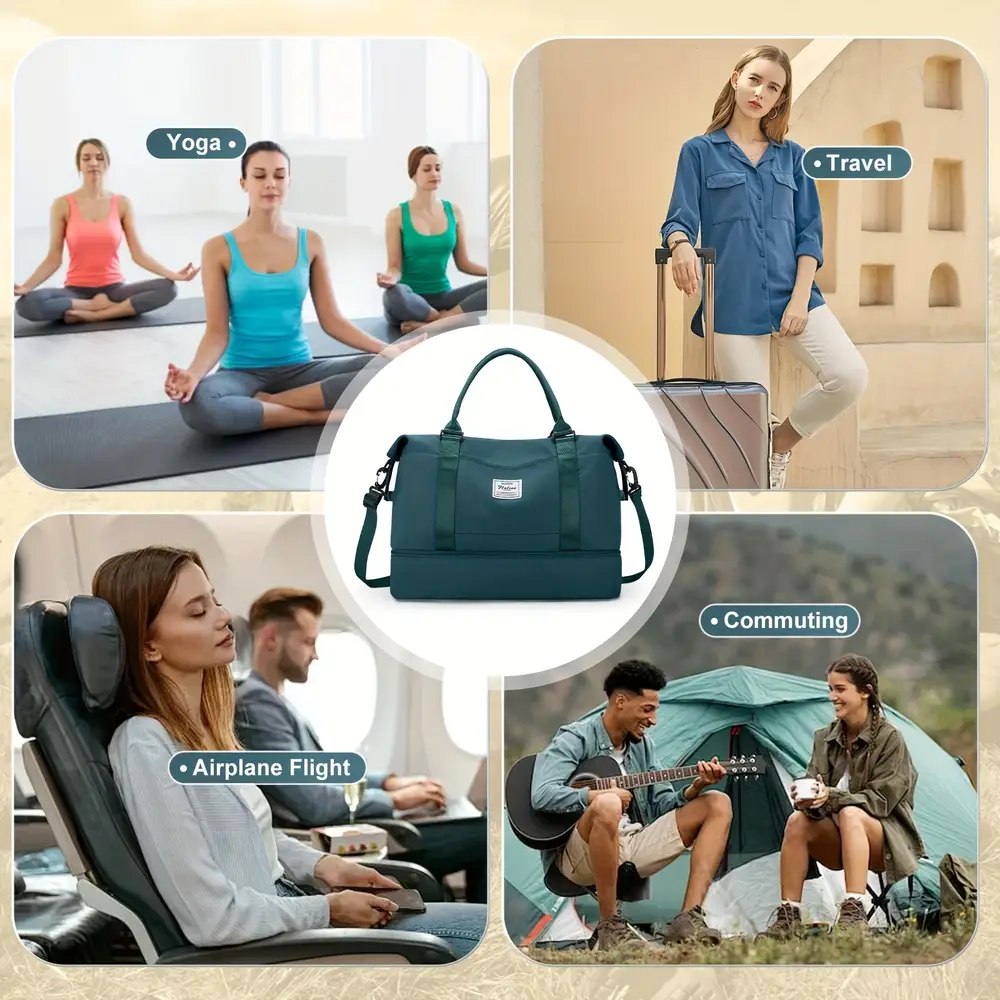 Sac de voyage femme polyvalent en nylon avec compartiments séparés et porte-chaussures