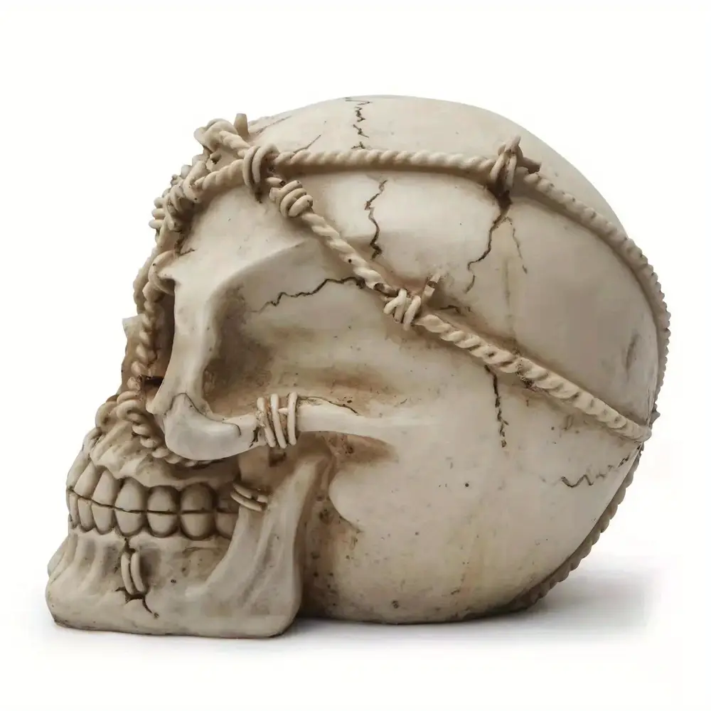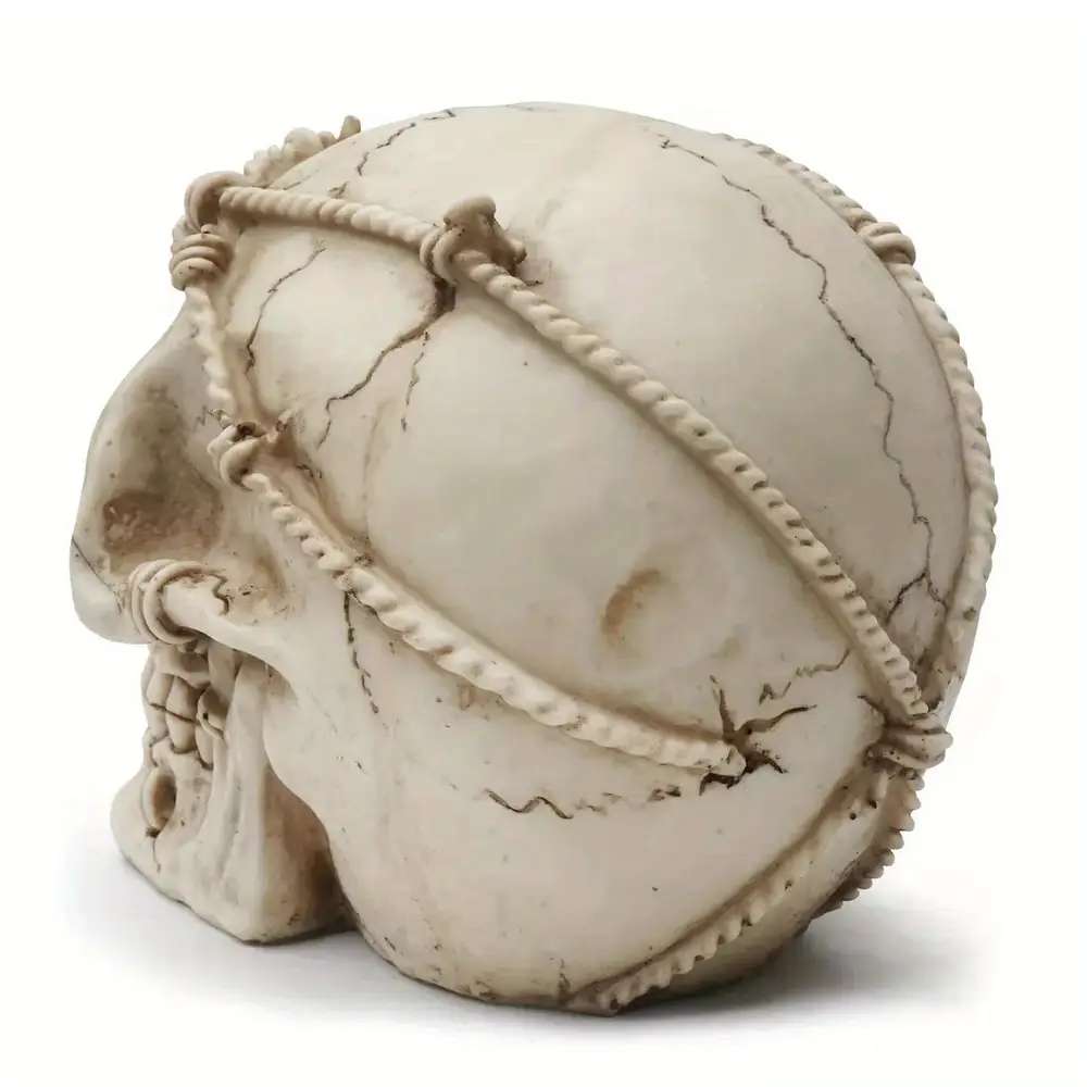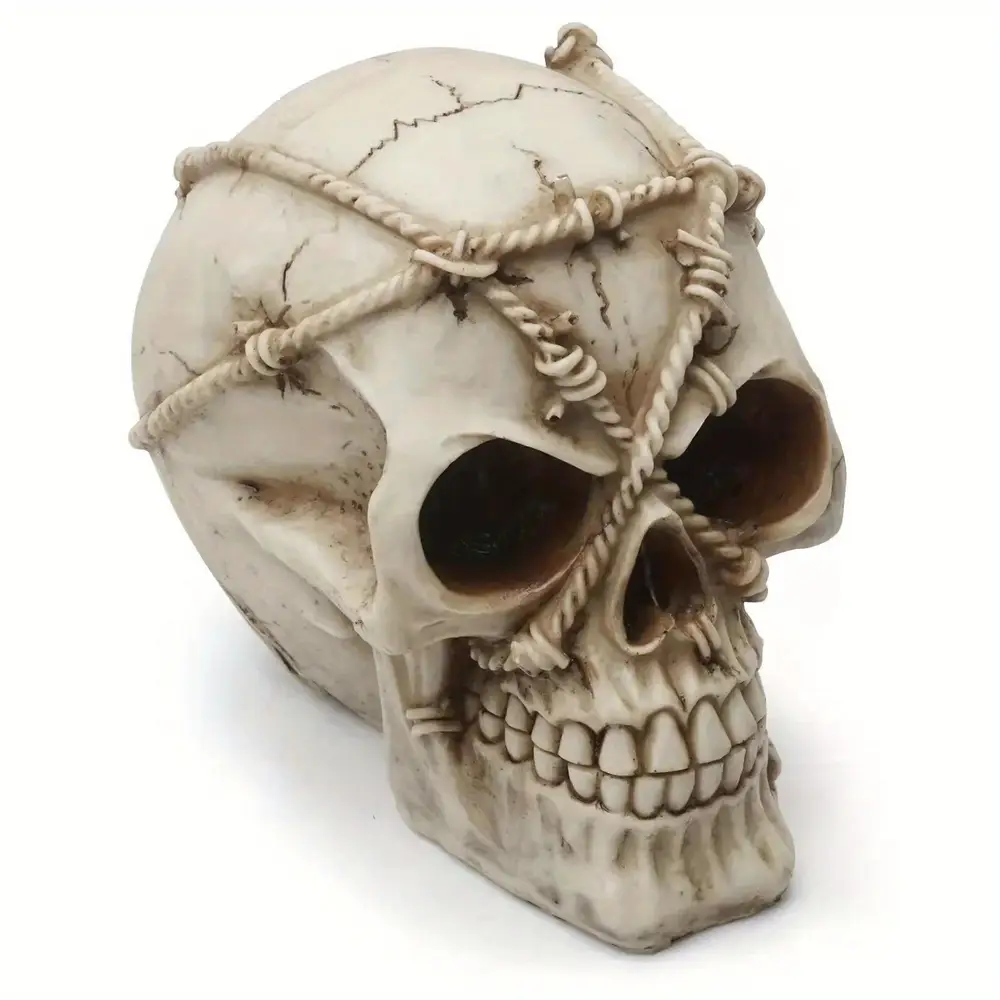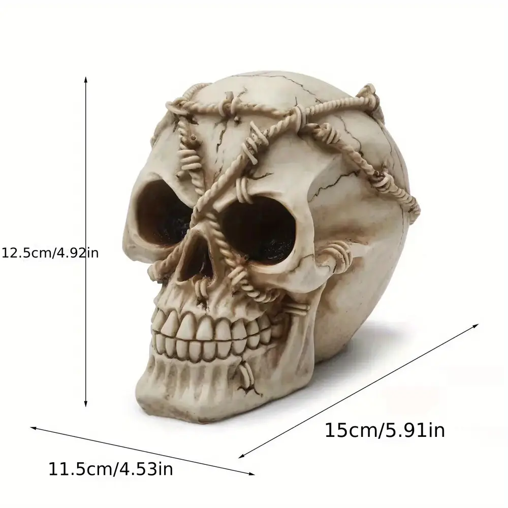 - Compacte et légère, la statue tête de mort résine s’adapte à tous les espaces sans encombrement
