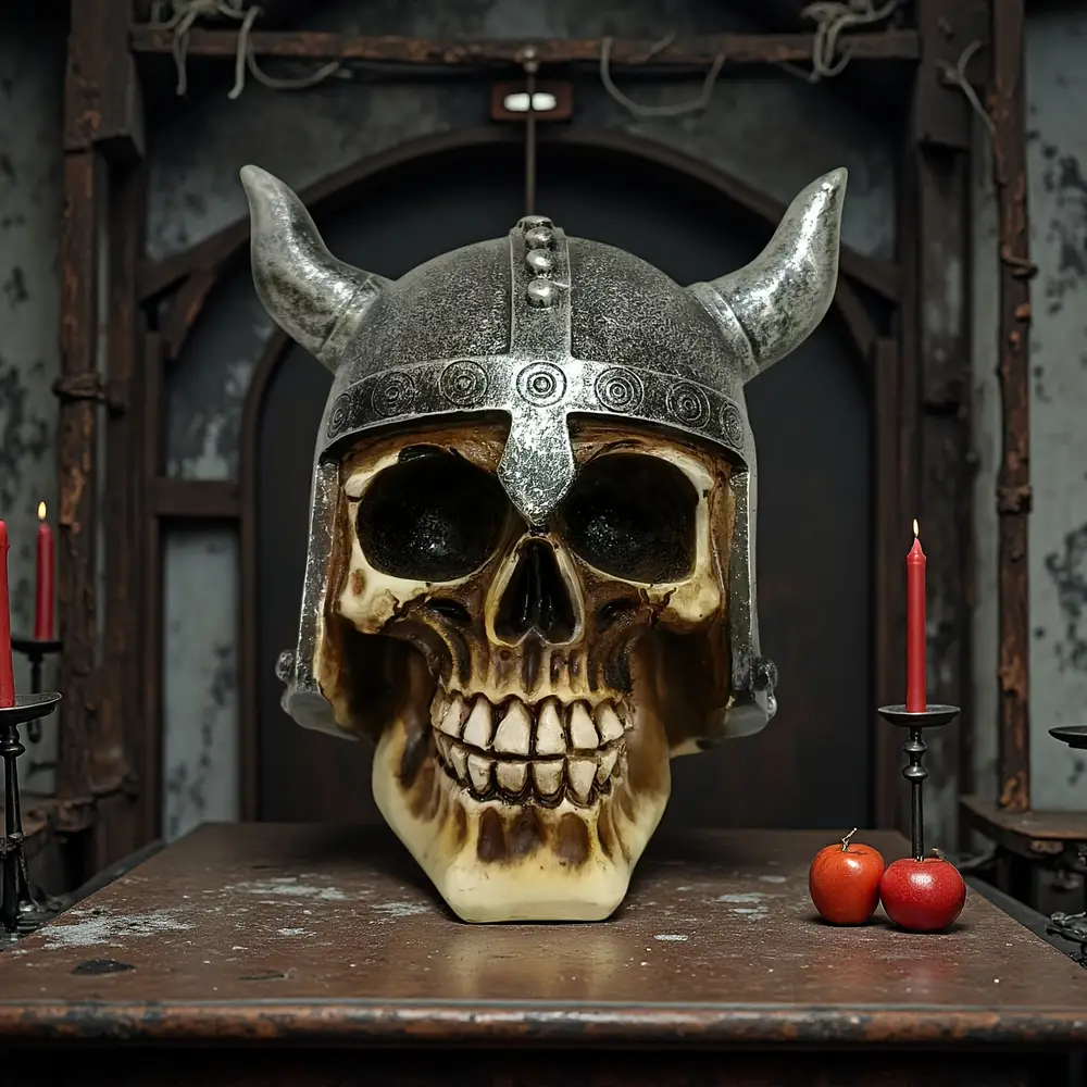 - Faites voyager vos invités au cœur des légendes nordiques avec ce crâne viking décoratif aux détails réalistes