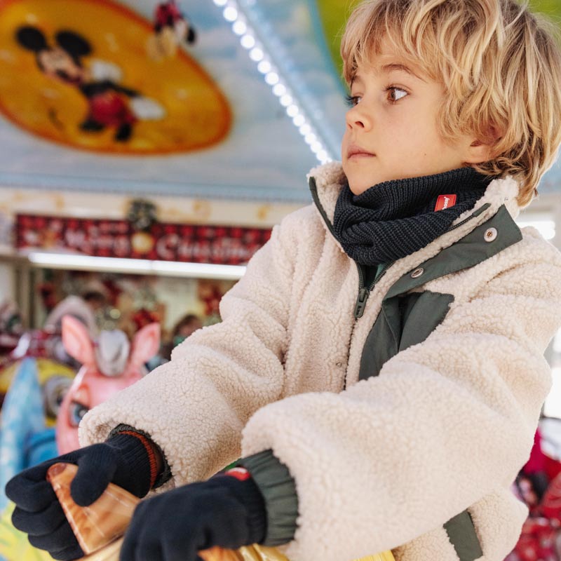 Pendant l’automne et l’hiver, gardez le cou de vos cool kids bien au chaud avec ce super snood doublé polaire de la marque Hello Hossy.