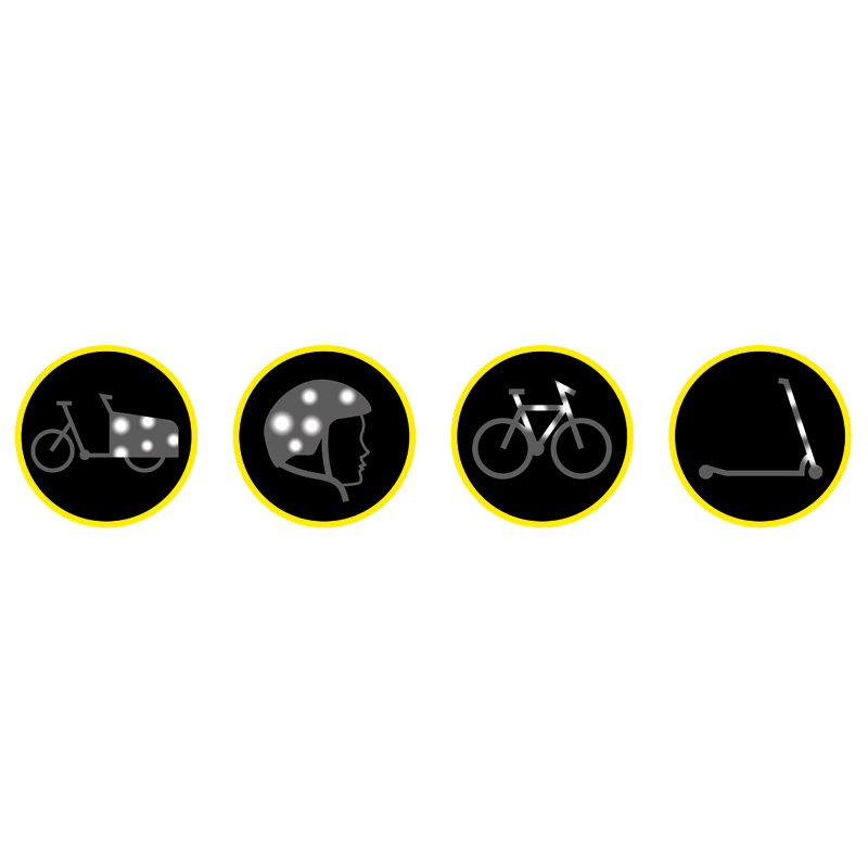 Cet équipement constitue un complément de visibilité et ne se substitue en aucun cas à un autocollant de haute visibilité certifié EN1150, ni à un équipement de sécurité obligatoire.