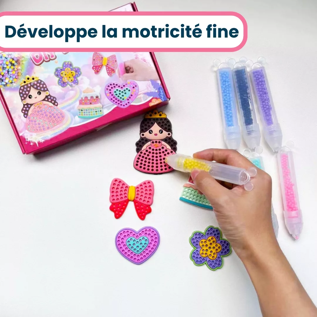 - Développement de la motricité fine grâce à la pose précise des perles
