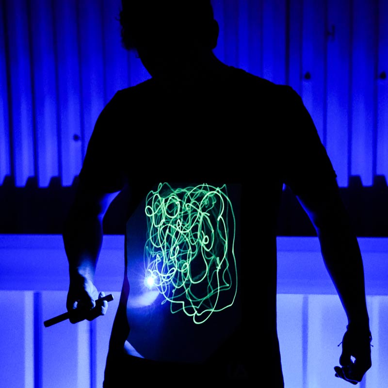 T-shirt adulte phosphorescent Couleurs: t-shirt noir Partie phosphorescente blanche Tailles: S, M, L ou XL, unisex Lampe led pour dessiner inclue (avec cordon pour être portée autour du cou) Dessins éphémères, environ 5 minutes T-shirt 100% coton Lavage à 30° en machine Ne pas repasser, ne pas passer au sèche-linge Fabriqué au Royaume-Uni Design Illuminated […]