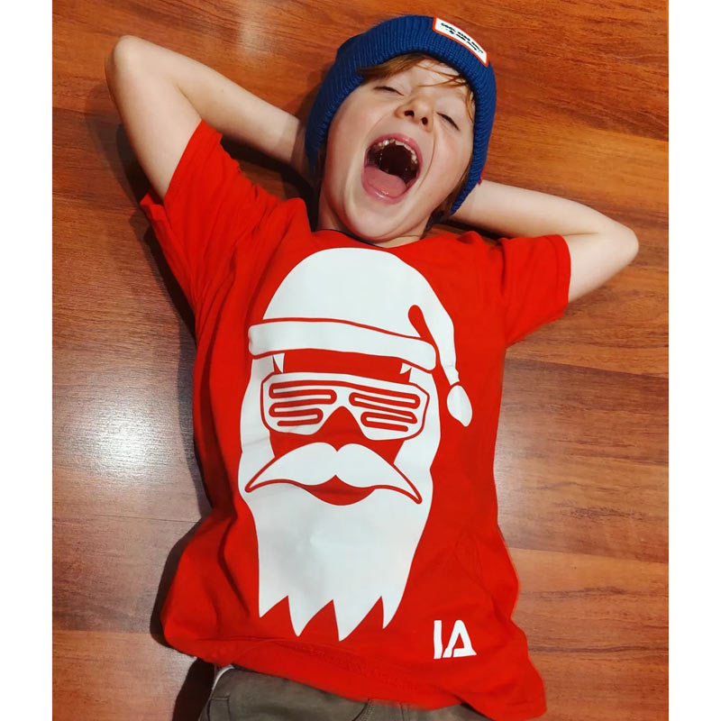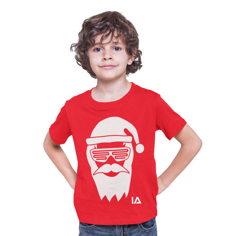 T-shirt enfant phosphorescent Cool Santa, le père Noël à lunettes, et lampe led, coloris Rouge/blanc, design Illuminated Apparel (Londres)