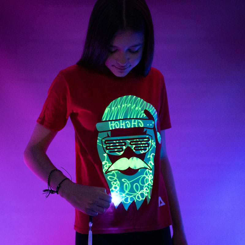 T-shirt enfant phosphorescent Couleurs: Rouge Motif: Cool Santa, Père Noël cool Partie phosphorescente blanche Tailles: 7-8 ans, 9-11 ans et 12-14 ans Lampe led pour dessiner inclue (avec cordon pour être portée autour du cou) Dessins éphémères, environ 5 minutes T-shirt 100% coton Lavage à 30° en machine Ne pas repasser, ne pas passer au […]