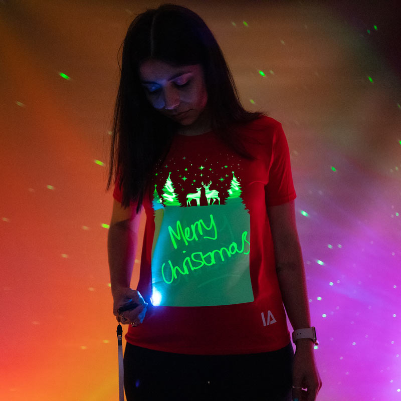 T-shirt enfant phosphorescent Couleurs: Rouge Motif: Rennes du Père Noël Partie phosphorescente blanche Tailles: 7-8 ans, 9-11 ans et 12-14 ans Lampe led pour dessiner inclue (avec cordon pour être portée autour du cou) Dessins éphémères, environ 5 minutes T-shirt 100% coton Lavage à 30° en machine Ne pas repasser, ne pas passer au sèche-linge […]