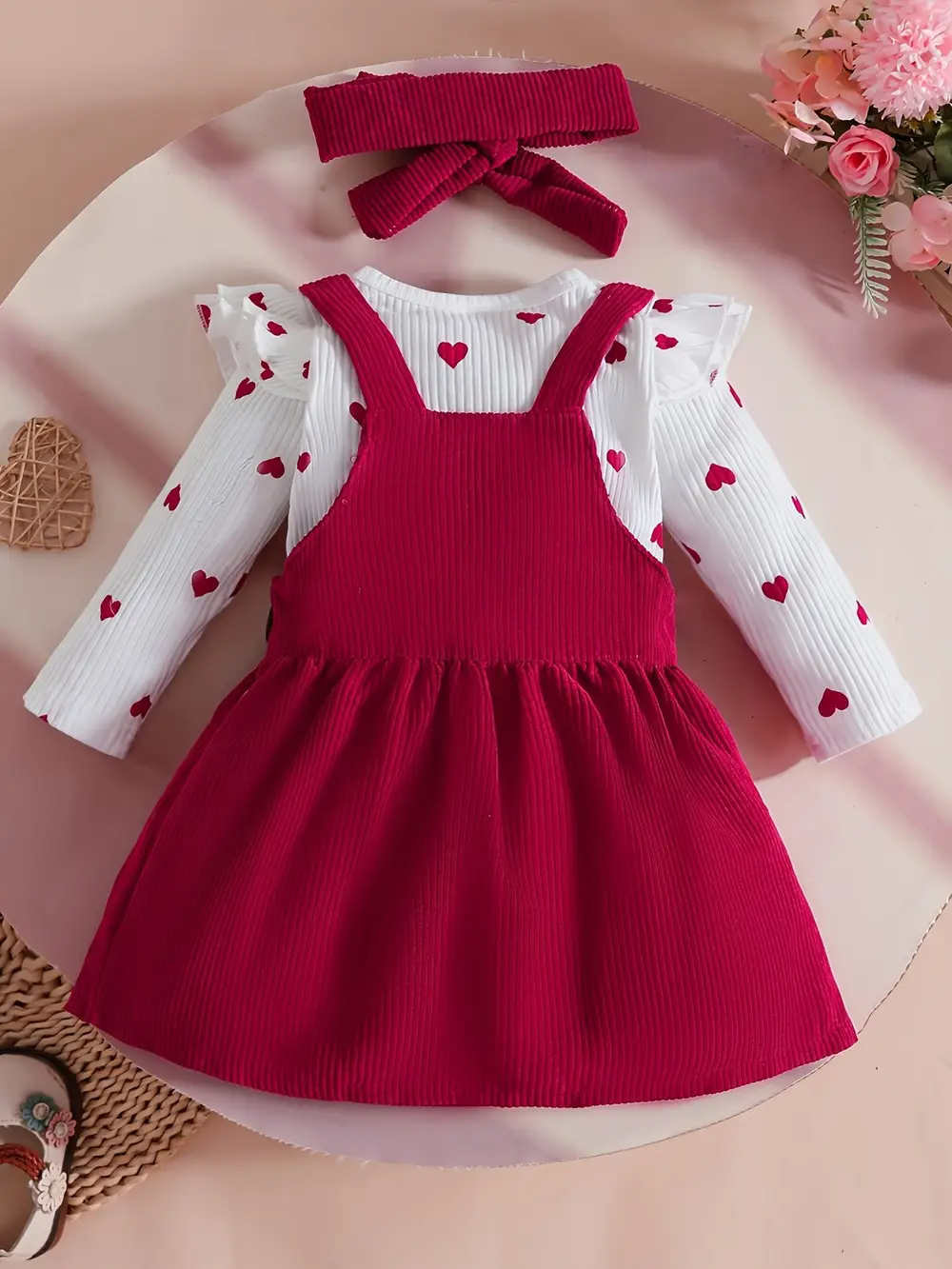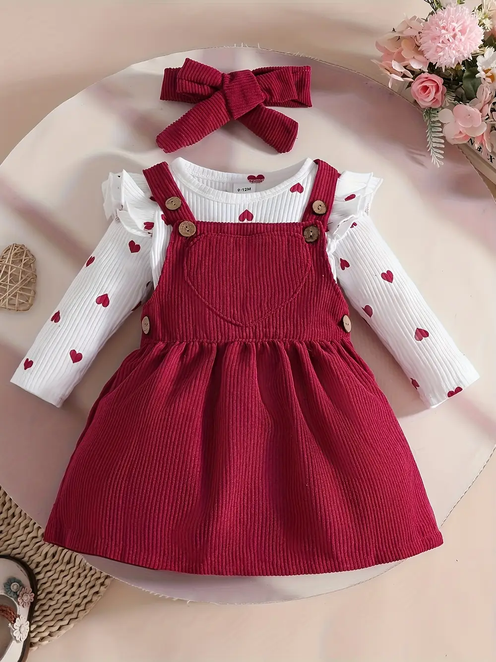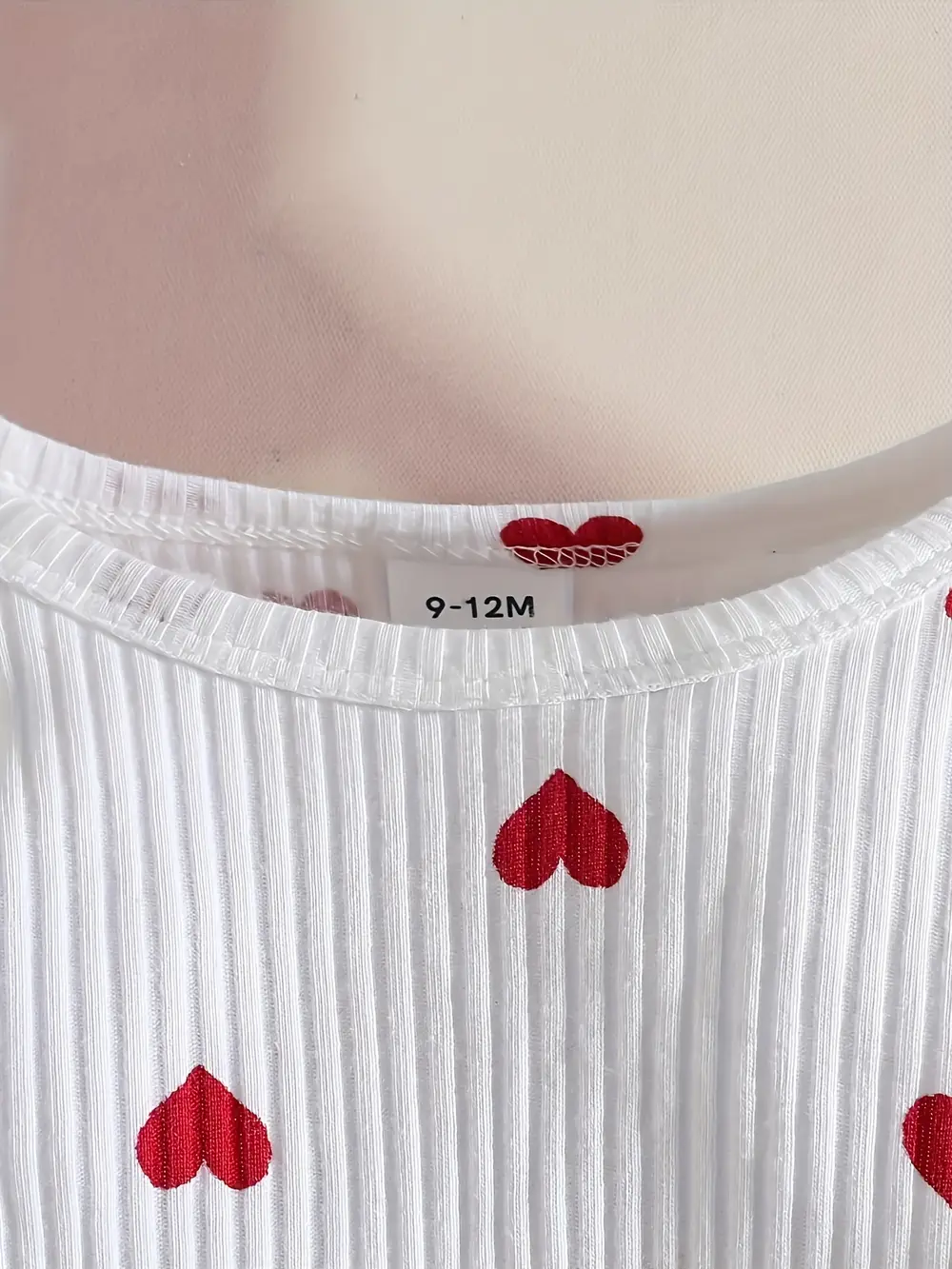 Tenue naissance bébé fille – haut à manches longues en velours côtelé avec cœur imprimé