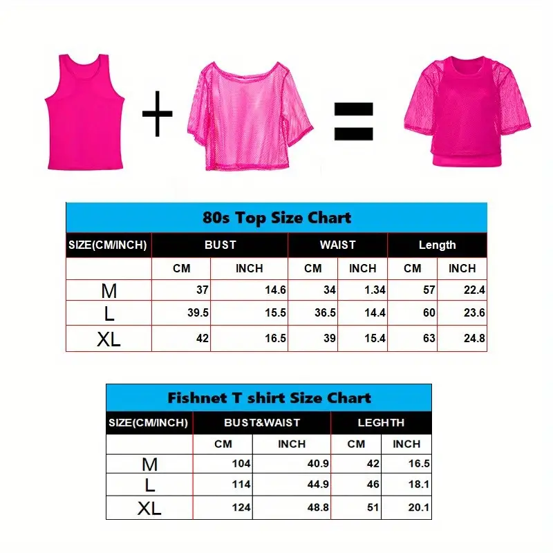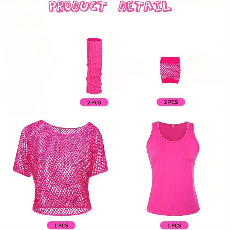 - Parfait pour créer un look complet soirée années 80 en quelques minutes : du haut filet au gilet, jusqu’aux bracelets fluos et lunettes vintage