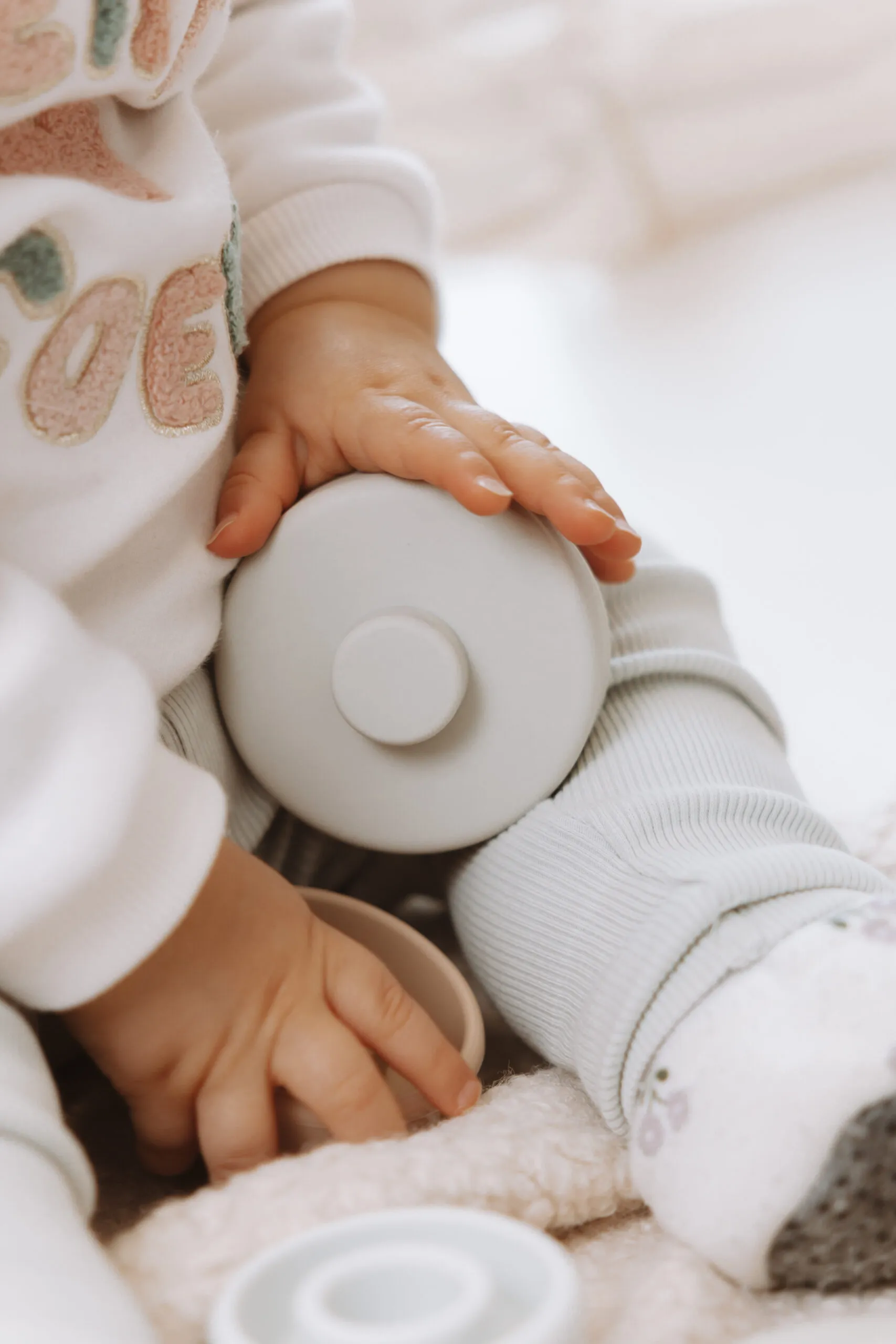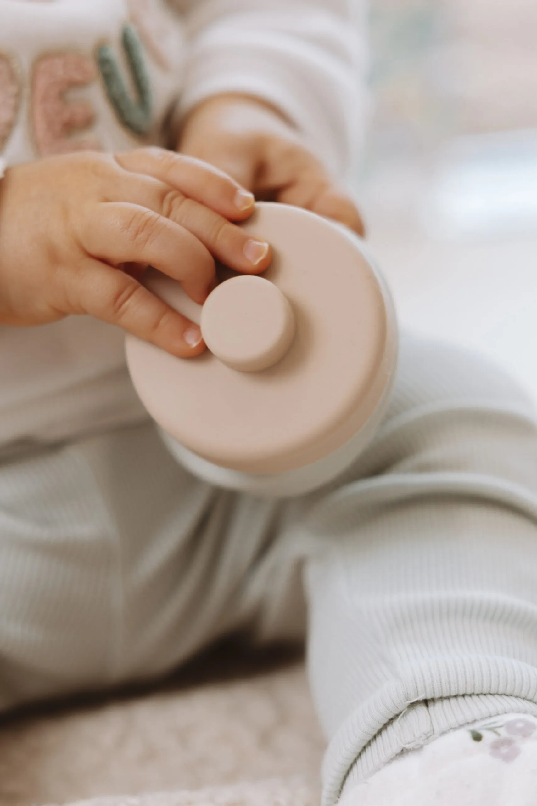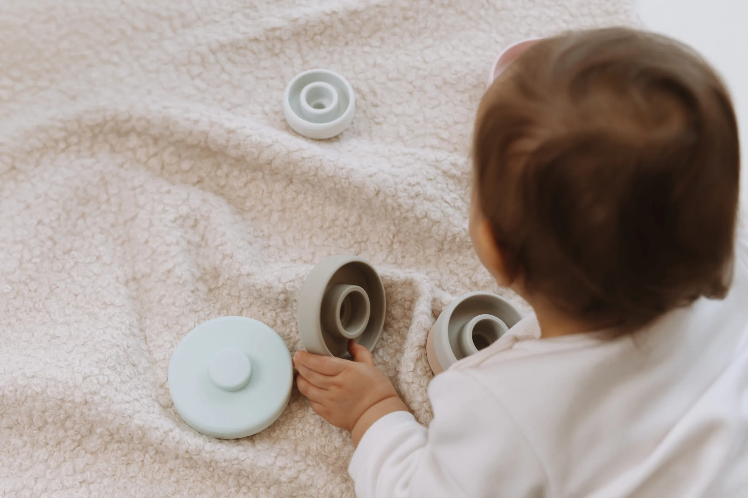 Cette tour à empiler silicone bébé est idéale pour stimuler la motricité fine, la coordination et l’exploration tactile de votre tout‑petit.