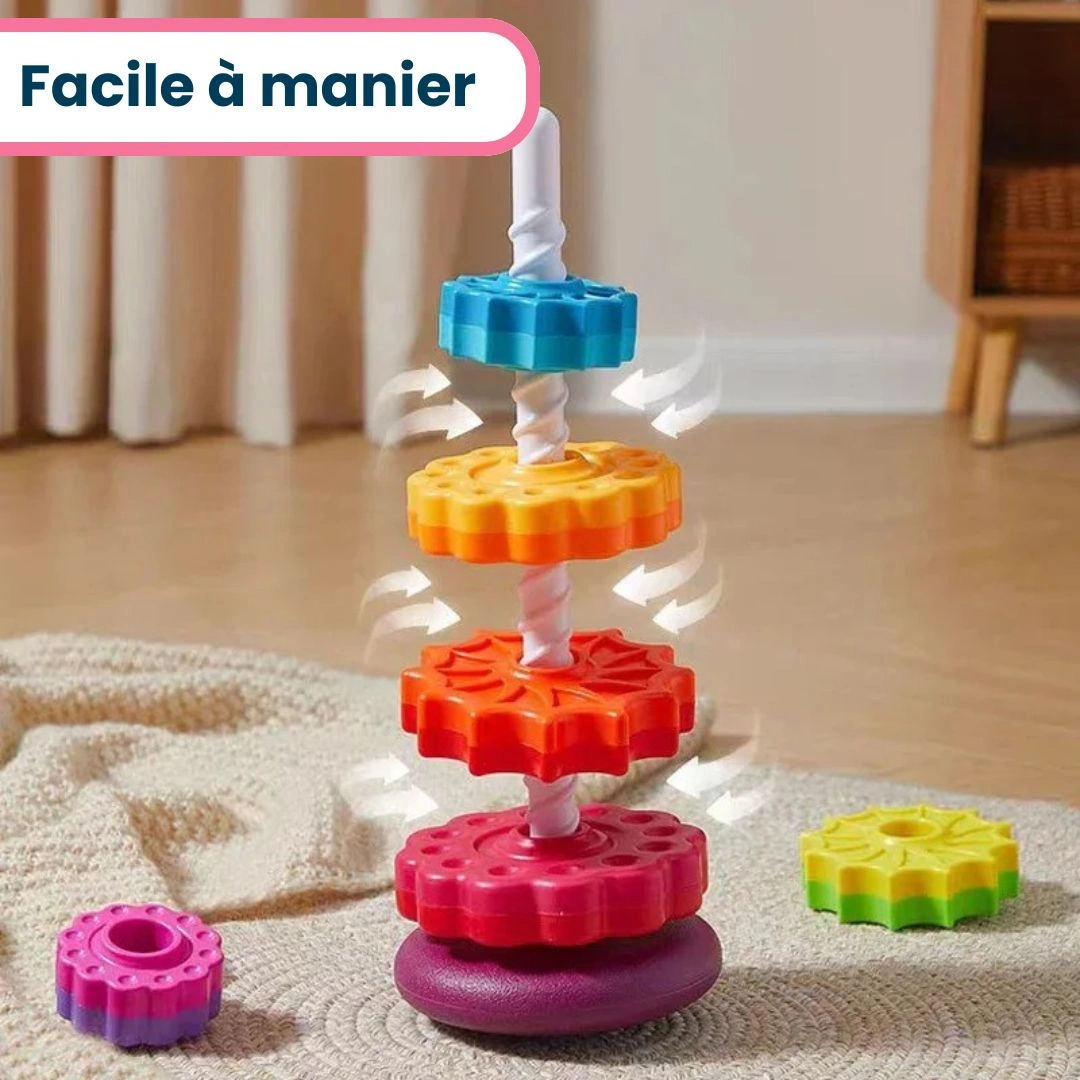 - Idéal pour enseigner les couleurs et les tailles en empilant les anneaux de manière ludique.