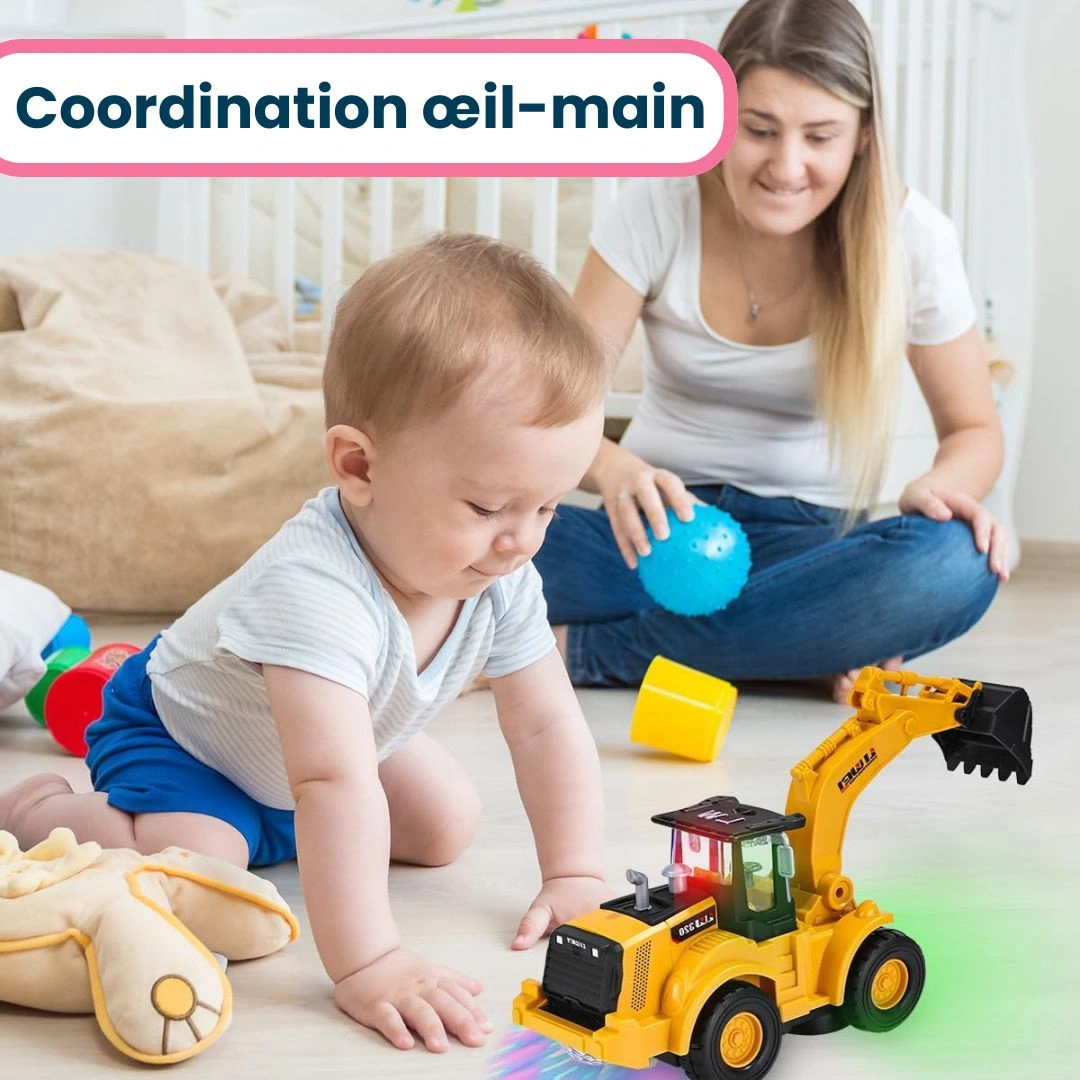 • Encourage la motricité fine en manipulant le tractopelle pour creuser ou jouer.