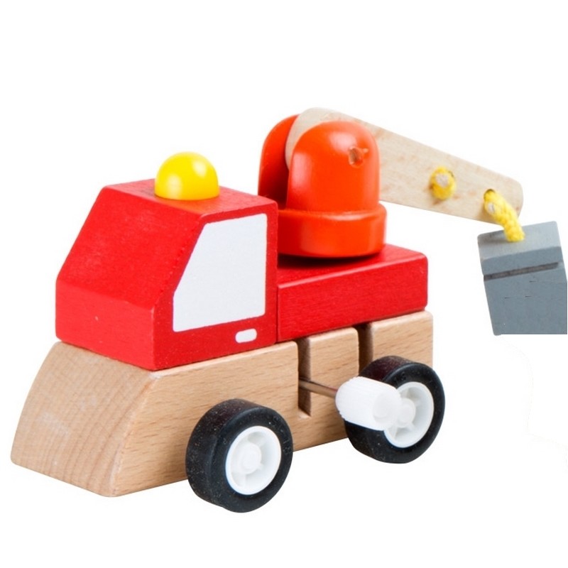 Véhicules de chantier en petit format à remonter fabriqué en bois certifié FSC® 100%. Du tractopelle au rouleau compresseur, en passant par la grue, chaque amateur de véhicules de chantier trouvera son bonheur.